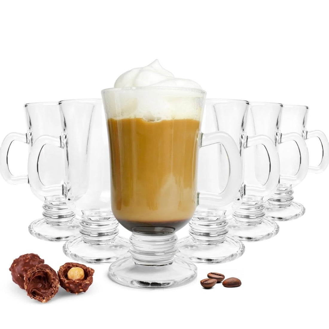 Set 6 căni din sticlă cu picior 230 ml Royal Mug – Căni Cafea, Cappuccino, Latte