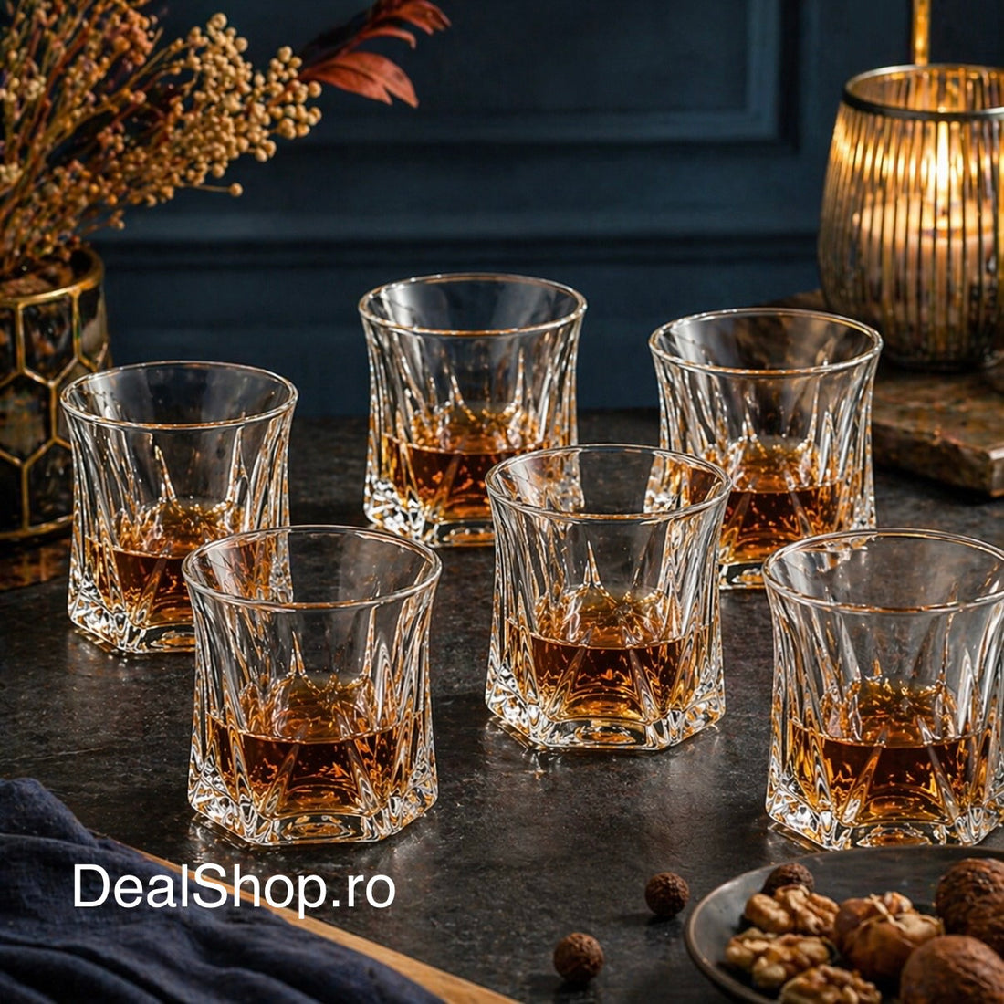 Transformă fiecare moment de relaxare într-o experiență elegantă cu setul de 6 pahare din sticlă...