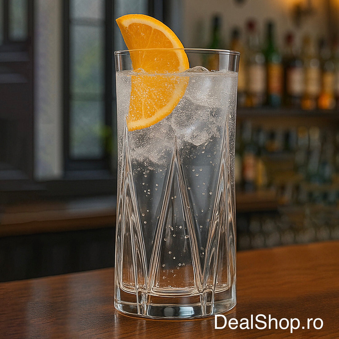 Set 6 pahare sticlă long drink 356 ml Brit440, design relief geometric, pahare înalte cocktail, suc, apă