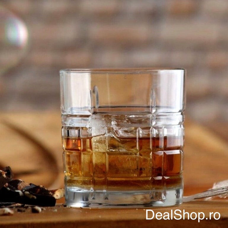 Set 6 pahare whisky sticlă 325 ml Brit 430, design cu relief geometric , pahare băuturi elegante, rezistente