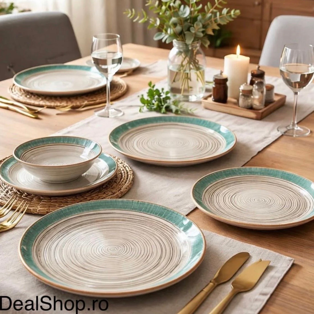 Serviciul de masă din porțelan Terra Verde – 48 piese pentru 12 persoane este alegerea...