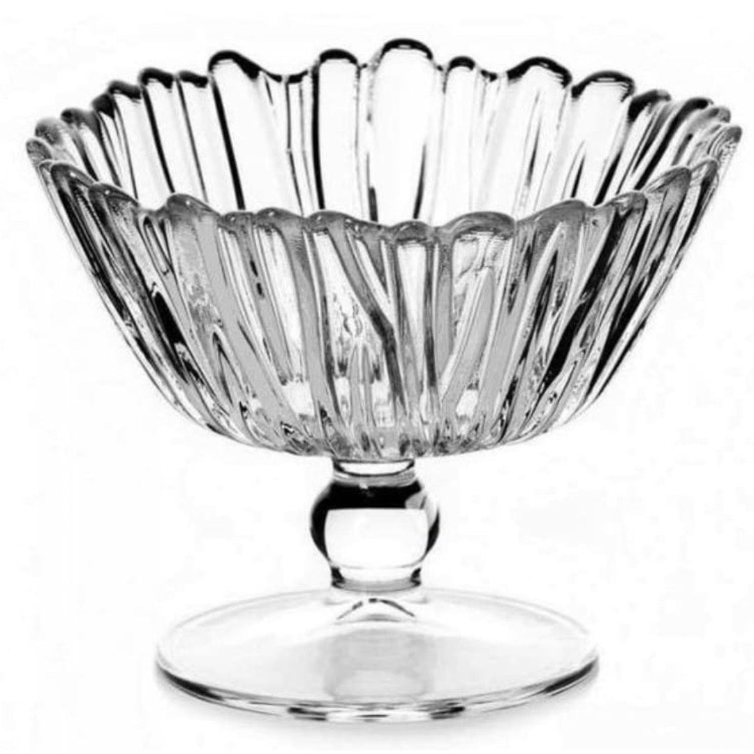 Bombonieră cu picior Pasabahce Aurora 14 cm din sticlă, bol pentru dulciuri, fructe și desert, design elegant striat