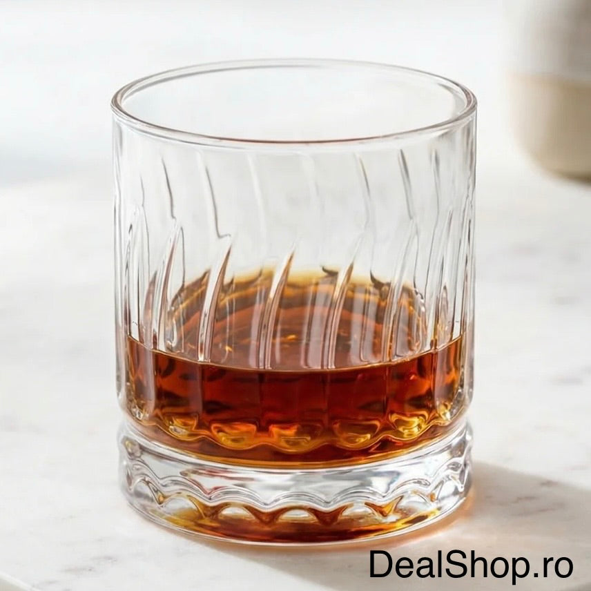 Set 6 pahare sticlă 330 ml Wave430, pahare whisky și cocktail, design modern cu relief ondulat , rezistente, elegante