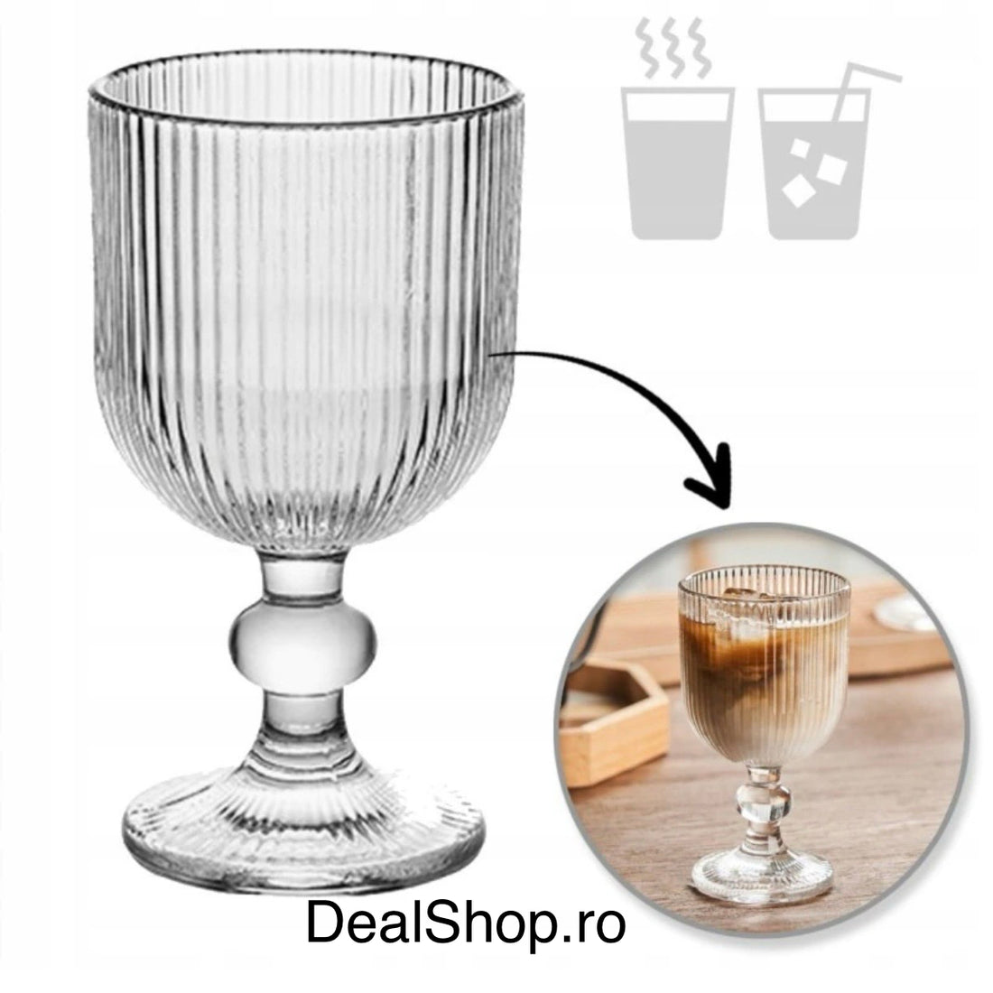 Set 6 pahare Alex cu picior 280 ml, sticlă transparentă striată, pahare vin/apă/suc elegante