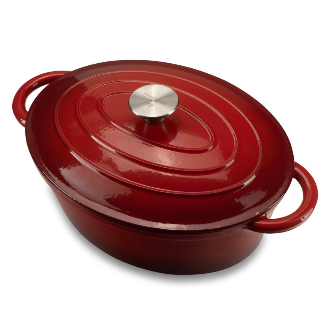 Oală din fonta emailata,Hausberg,HB-H750 ,capacitate 4,5 L,diametru 30 x 23 cm,adâncime 12 cm,interior ,capac din fontă,roșu