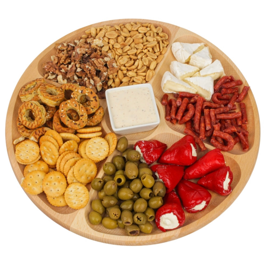 Transformă orice masă într-o prezentare elegantă și practică cu platoul rotativ compartimentat din lemn natural,...