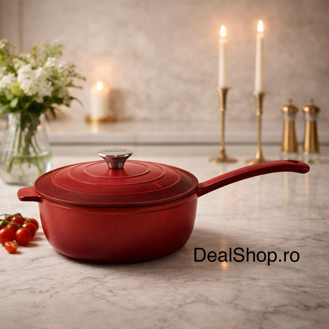 TIGAIE ADANCA FONTA EMAILATA + CAPAC 24 X 8 CM, 2.5 L, RED LINE, COOKING...