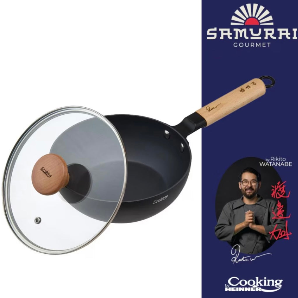 Tigaie wok cu capac Cooking by Heinner - Samurai Gourmet by Rikito Watanabe, invelis ceramic,...