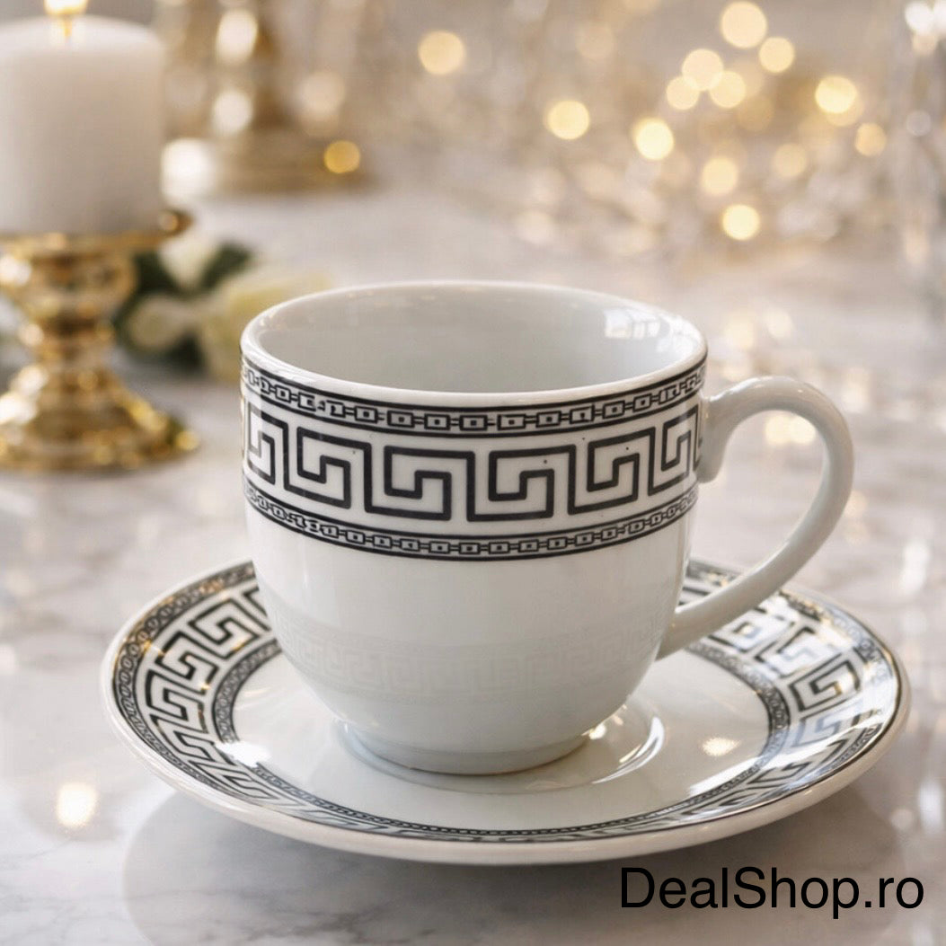 Set 6 cești cafea din porțelan Imperial 180 ml cu farfurii, design elegant