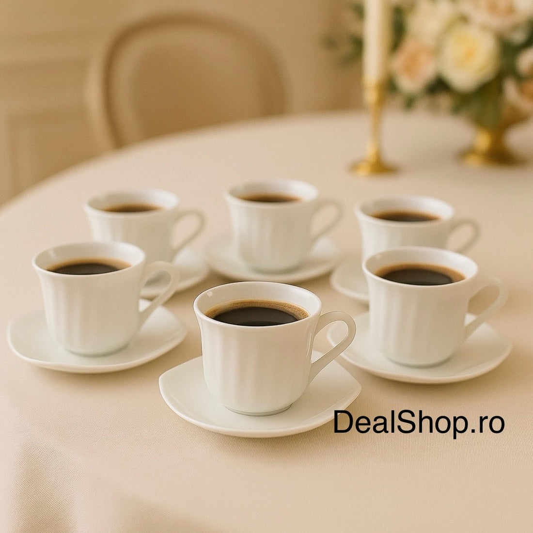 Savurează aroma preferată de cafea sau ceai cu eleganța setului de 6 cești din opal...