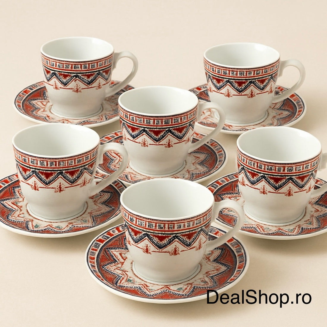 Cești cafea/ceai model Tradițional capacitate 120 ml 12 piese 6 canite + 6 farfurii
