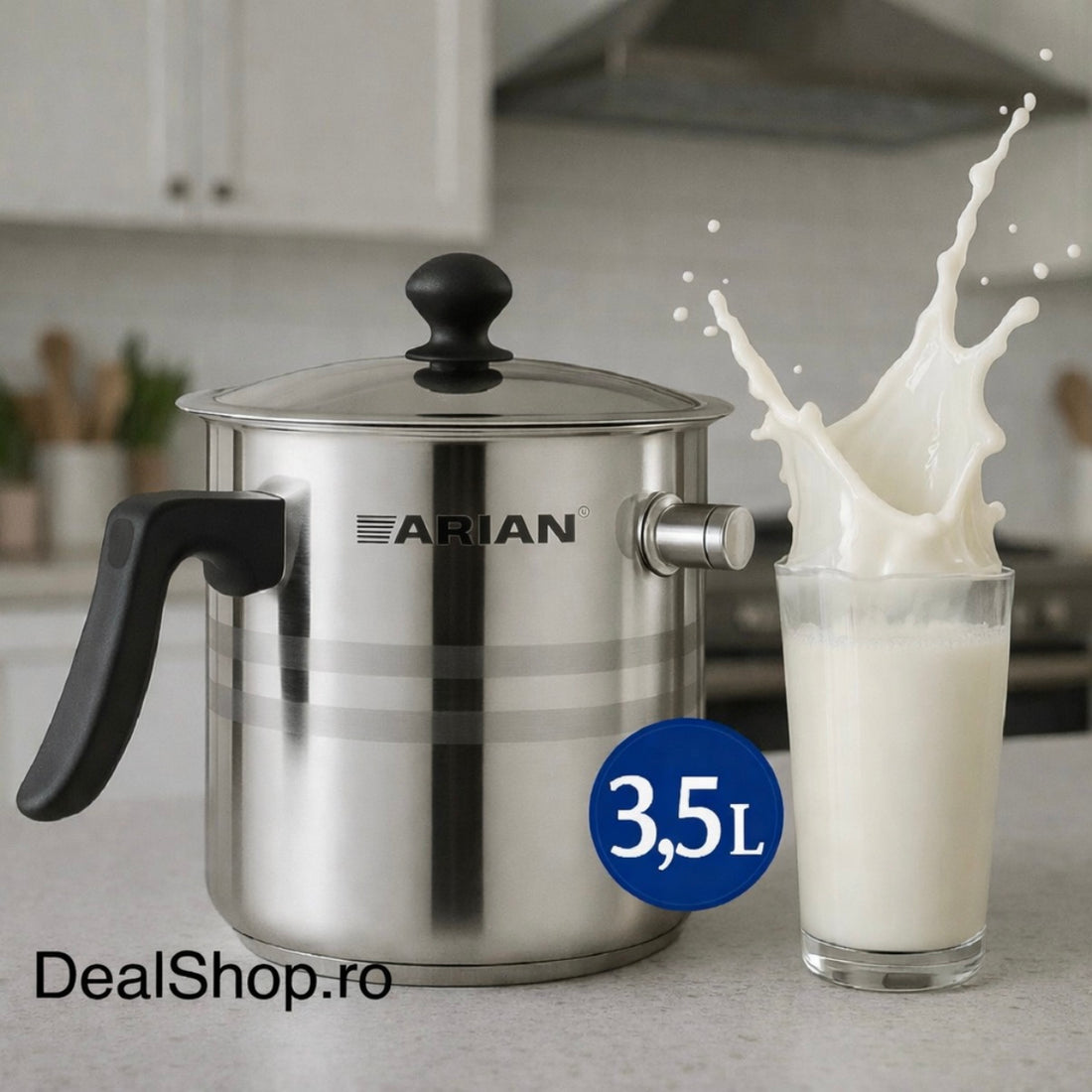 Oală pentru Fiert Lapte Arian 3.5 litri Inox fluier, perete Dublu, Capac Inclus maner termorezistent