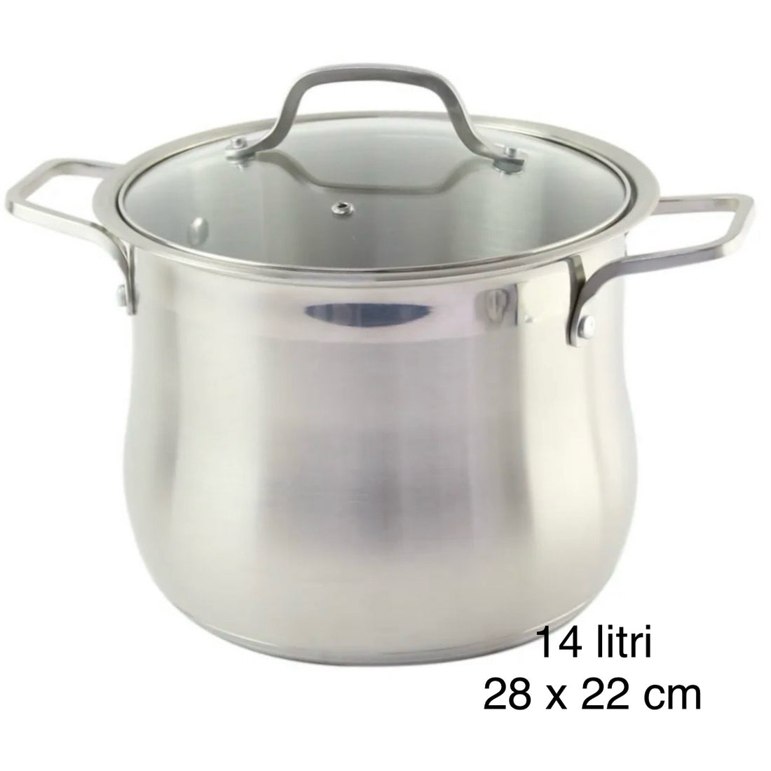 Oala inox, fund triplu, capac din sticla, Swan-Belly, cantitate oala 14 litri, 28 x 22 cm