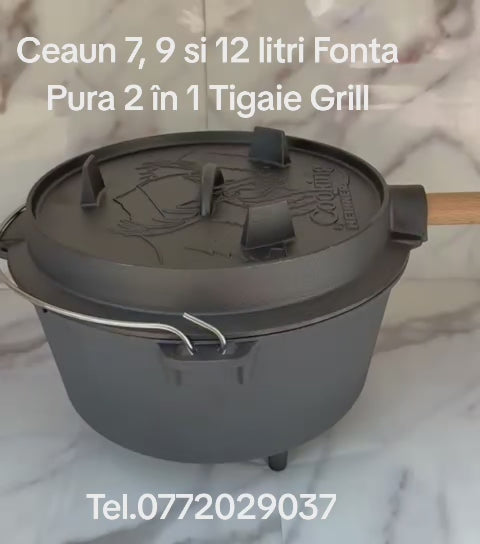 Ceaun 7 litri fonta pura 2 in 1 capacul poate fi folosit ca tigaie grill Gateste sanatos traditional