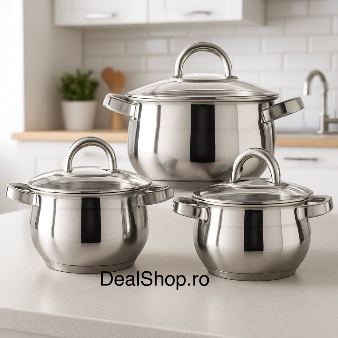 Set Oale Inox 6 Piese cu Capace – 2.8L, 3.8L, 6.5L, Fund Capsule 3 Straturi