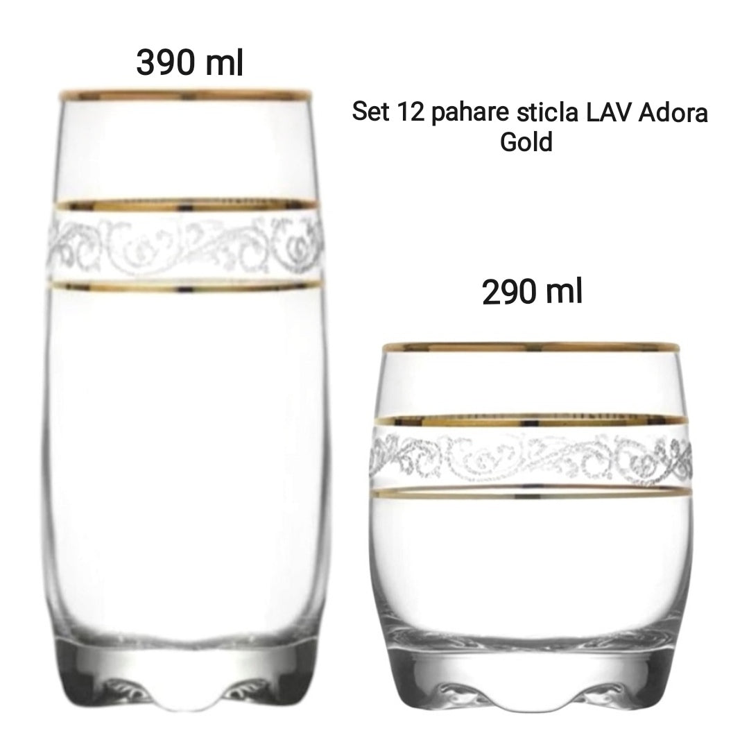 Set 12 Pahare din Sticlă LAV Adora Gold – Eleganță cu Detalii Aurii | 6x390...
