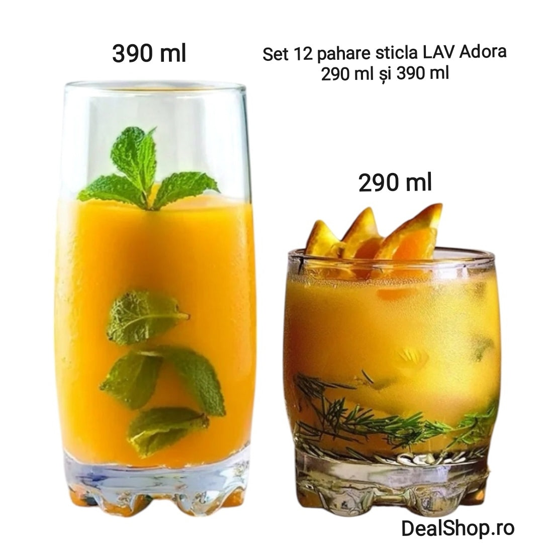 Set 12 Pahare din Sticla LAV Adora 6x390 ml + 6x290 ml Elegante pentru Apa Suc Vin sau Cocktailuri pt terasa piscina evenimente