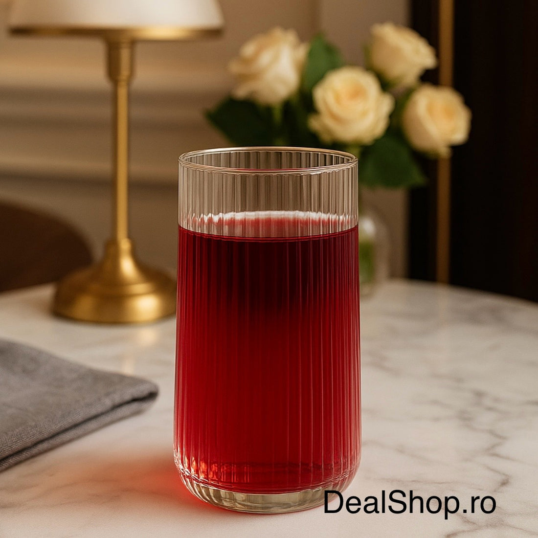 Set 12 Pahare din Sticla Transparentă cu Striatii 400 ml Design Modern și Elegant