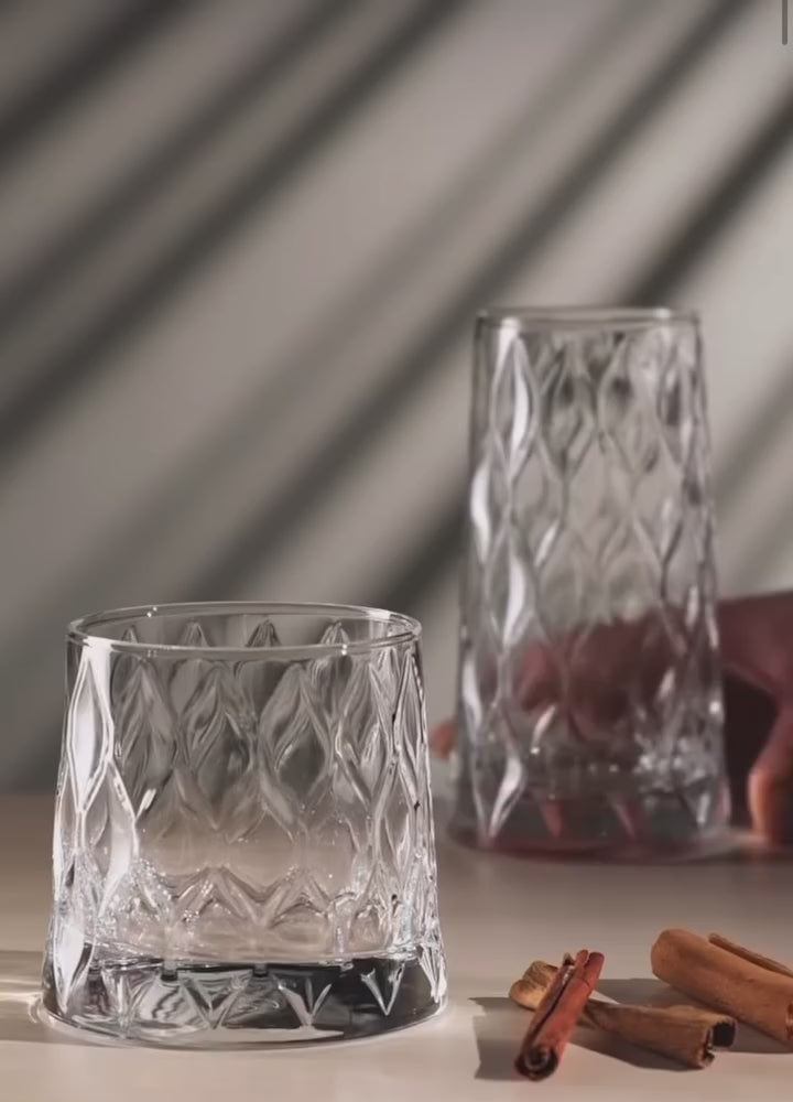 Set 12 Pahare Estrella 305 ml – Sticlă groasa cu design geometric elegant ideale pentru whisky apa sau cocktailuri