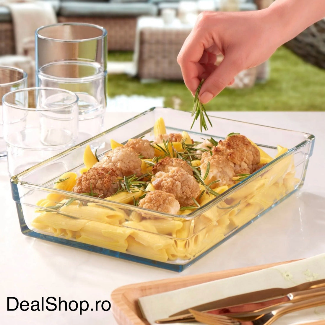 Pregătește mese delicioase și sănătoase cu vasul dreptunghiular Borcam din sticlă termorezistentă, perfect pentru gătit,...