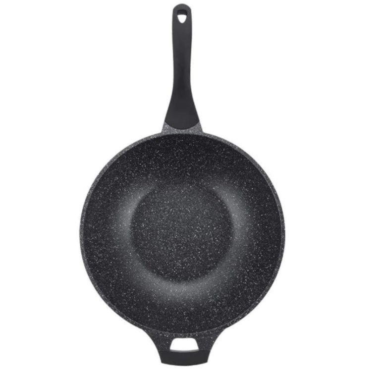Tigaie Wok, Royalty Line RL-BW32ML 32 cm, 5,9 litri interior marmura, fără capac