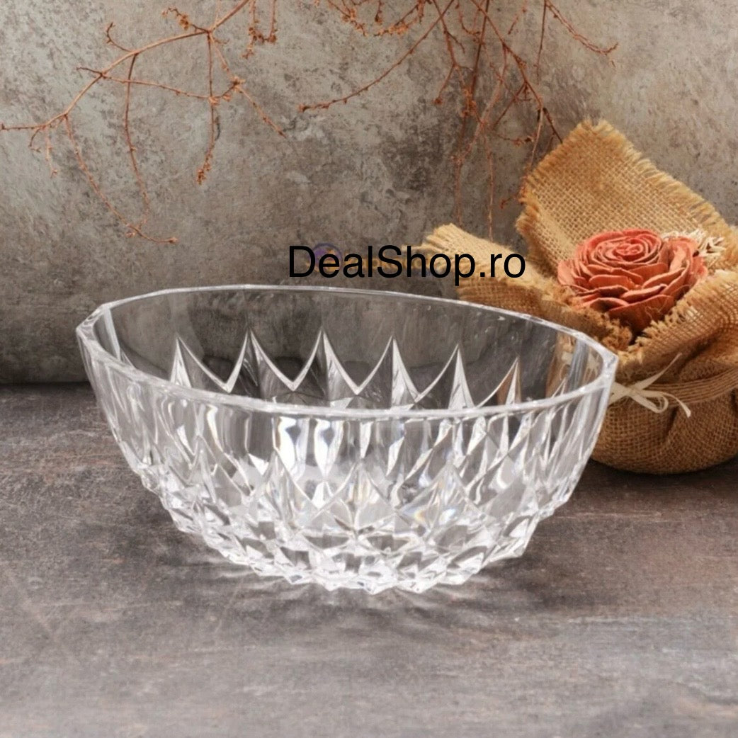 Bol oval din sticlă Lavinia, 24 x 15.5 x 9.5 cm – design elegant cu efect de cristal, ideal pentru servire rafinată