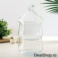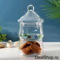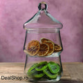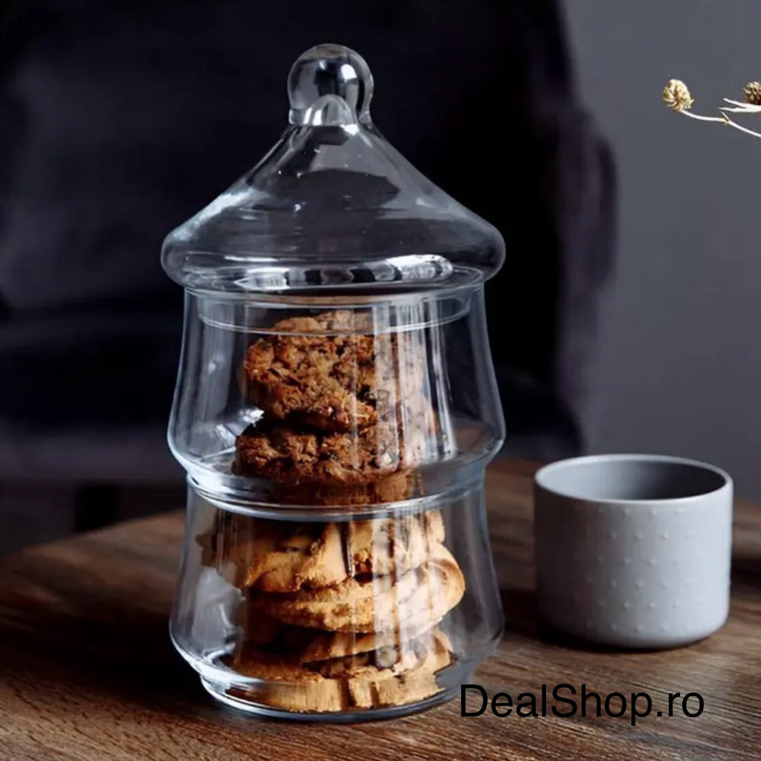 Bombonieră din sticlă cu 2 compartimente și capac, Design Elegant, 25 cm – Ideală pentru Dulciuri și Decor