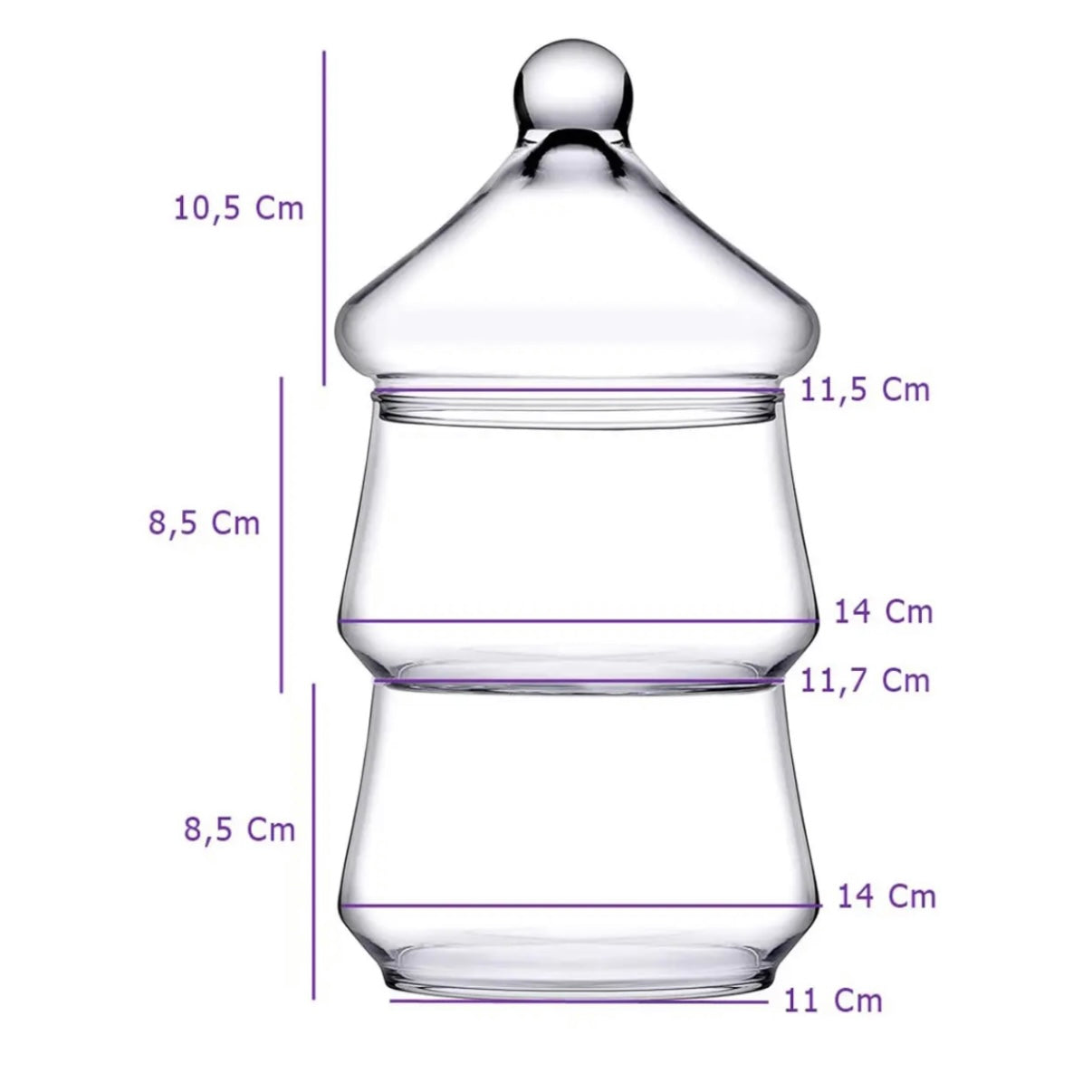 Bomboniera din sticlă cu 2 nivele și capac aduce un plus de eleganță în orice casă. Perfectă pentru bomboane, biscuiți, praline, fructe uscate sau macaron, această piesă decorativă impresionează prin designul ei modern și aspectul premium.