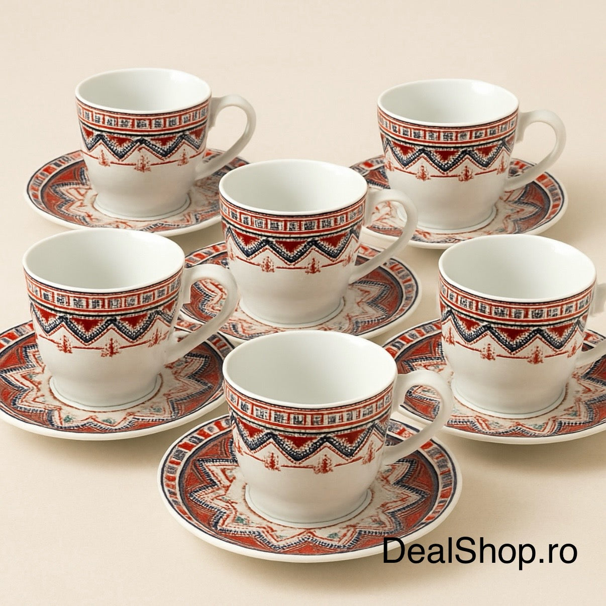 ✔ Set complet 6 cești + 6 farfurioare