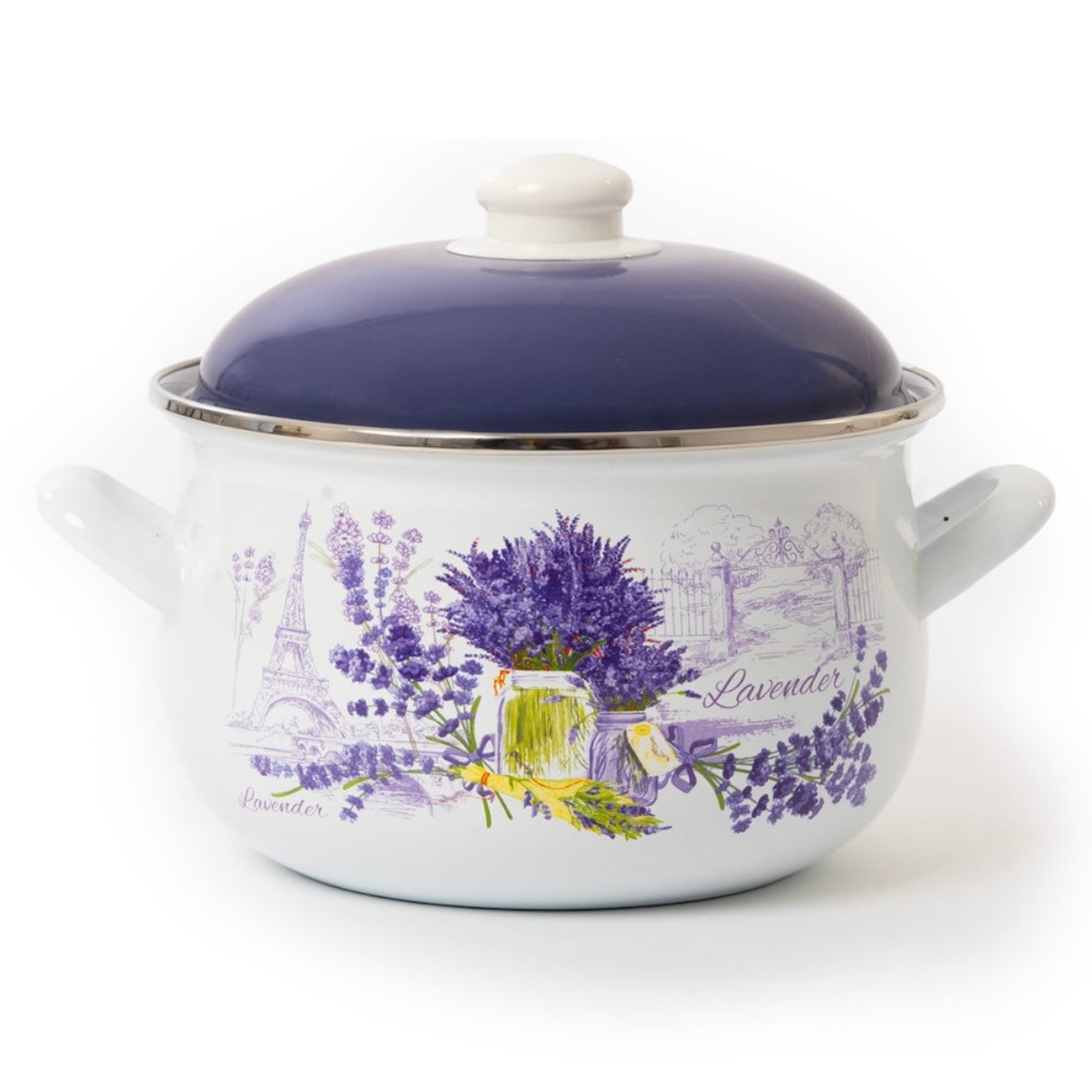 Cratiță Emailată cu Capac Lavender, 24 cm, 6 L, Decor Lavandă
