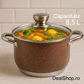 Cratiță Premium Royalty Line Brown 6,5 L – Inox cu fund multistrat și capac din sticlă, gătit rapid, elegant și sănătos