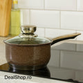 Cratită cu coadă Royalty Line Brown 2.1 litri – inox cu fund multistrat și capac din sticla gătit rapid și elegant