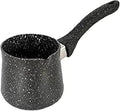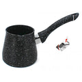 Ibric granit nr. 4, cu capacitate de 500 ml, ideal pentru prepararea tradițională a cafelei la ibric, încălzirea laptelui, topirea untului, prepararea sosurilor sau a ceaiului. Realizat din aluminiu turnat cu strat antiaderent de tip piatră, asigură o încălzire rapidă și uniformă, fără lipire și fără ardere.