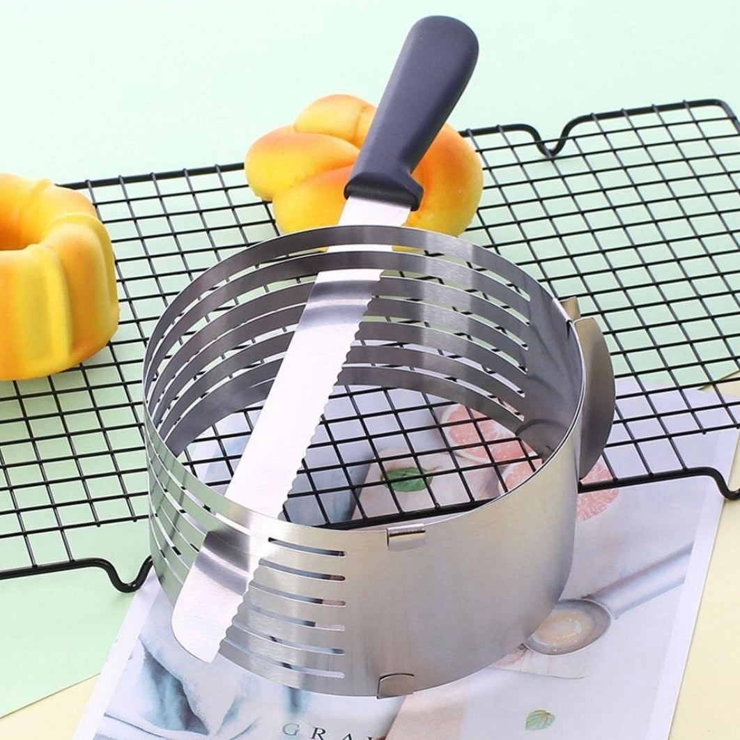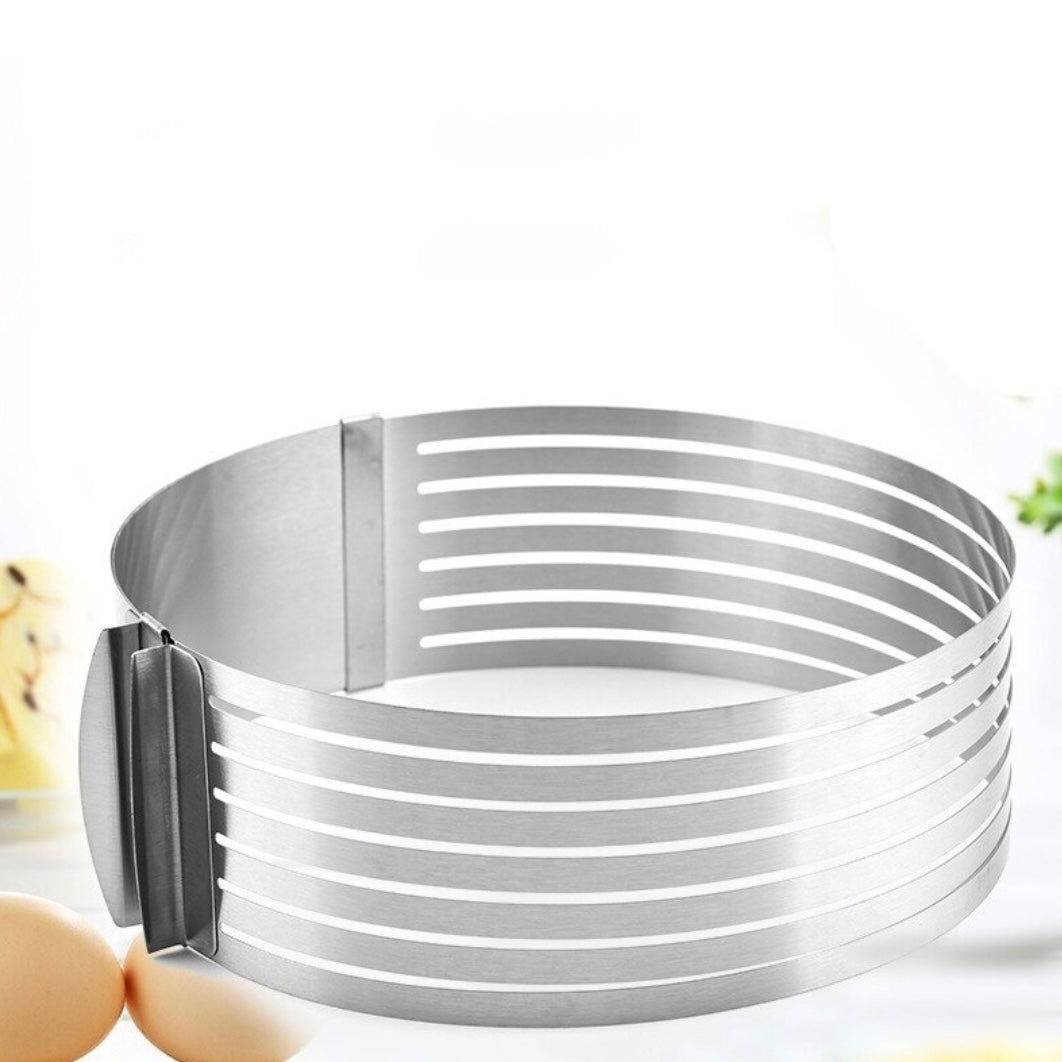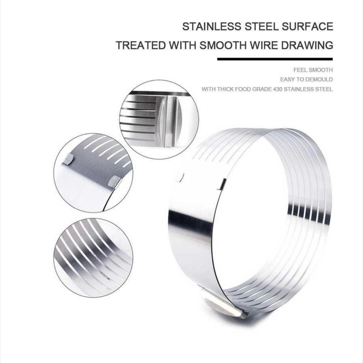 Inelul ajustabil este realizat din otel inoxidabil si va ajuta sa preparati blaturi de tort, fiind destinat uzului personal sau in cofetarii. Inelul ajustabil va ajuta sa taiati blatul in 7 parti egale fiind prevazut cu gauri pe lateral.