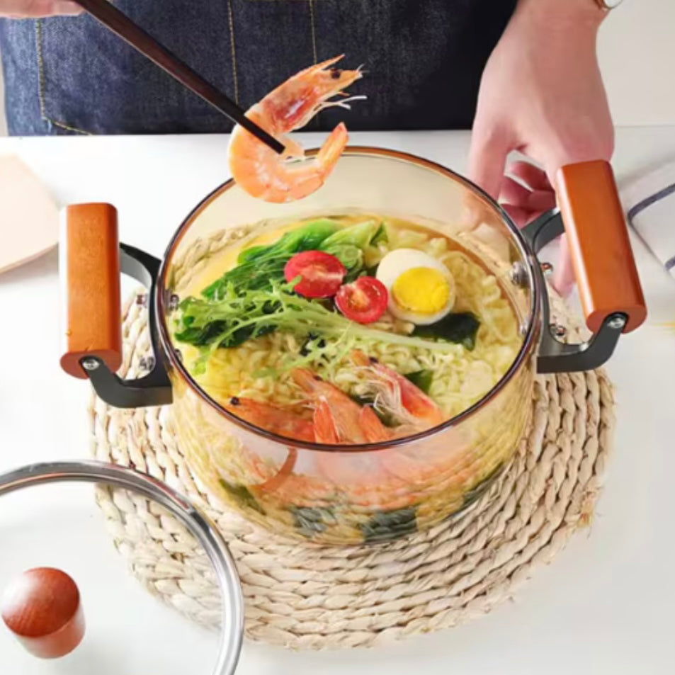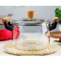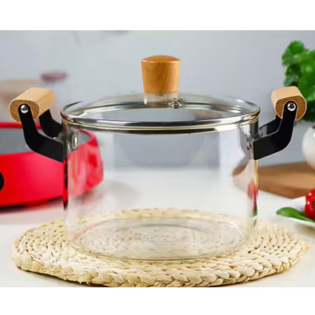 Cratiță cu Capac din Sticlă Borsilicata,manere din lemn Termorezistentă 2,5 Litri