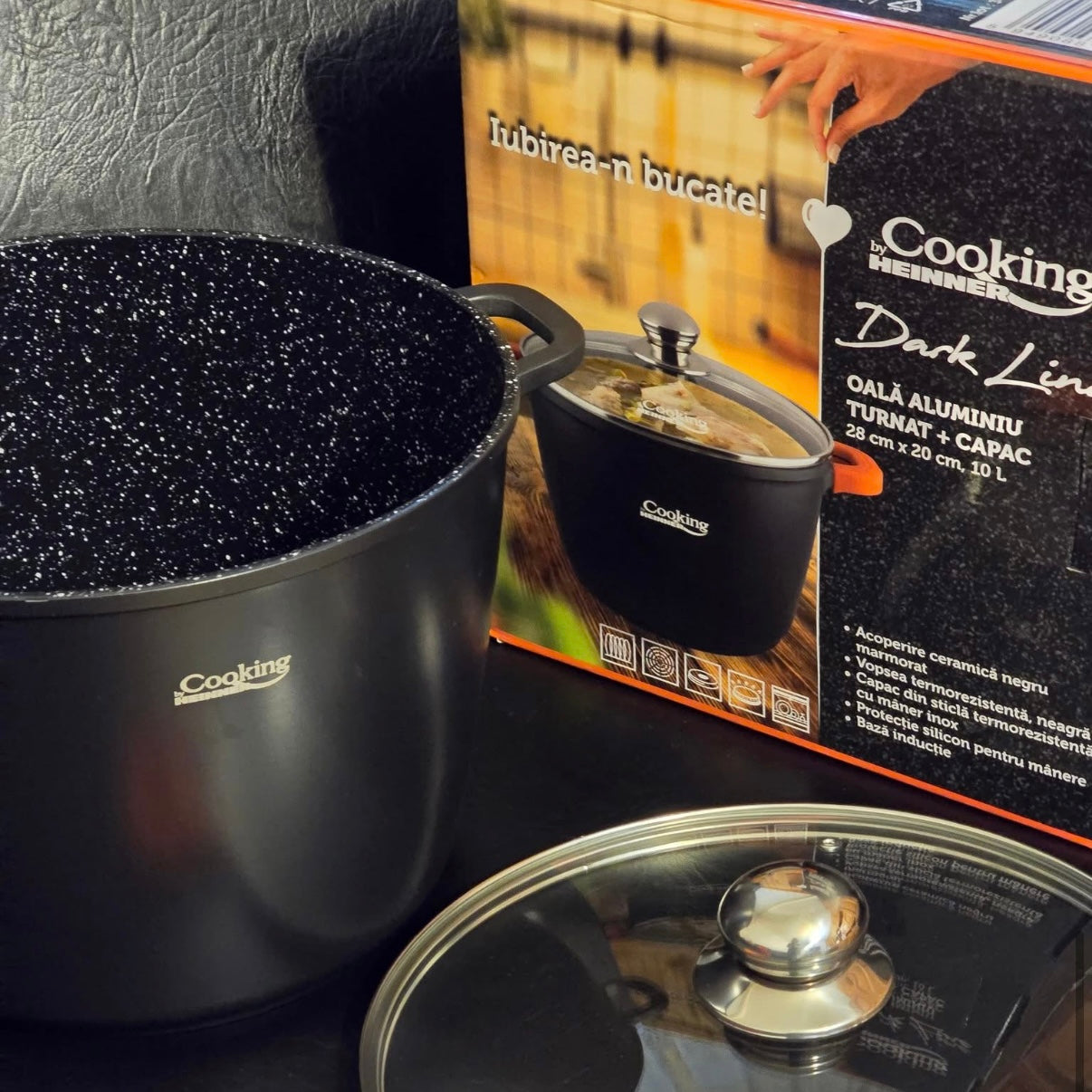 Oala 10 litri invelis de marmura capac de sticla Cooking oala ciorba sarmale GATESTE SANATOS Cadoul perfect