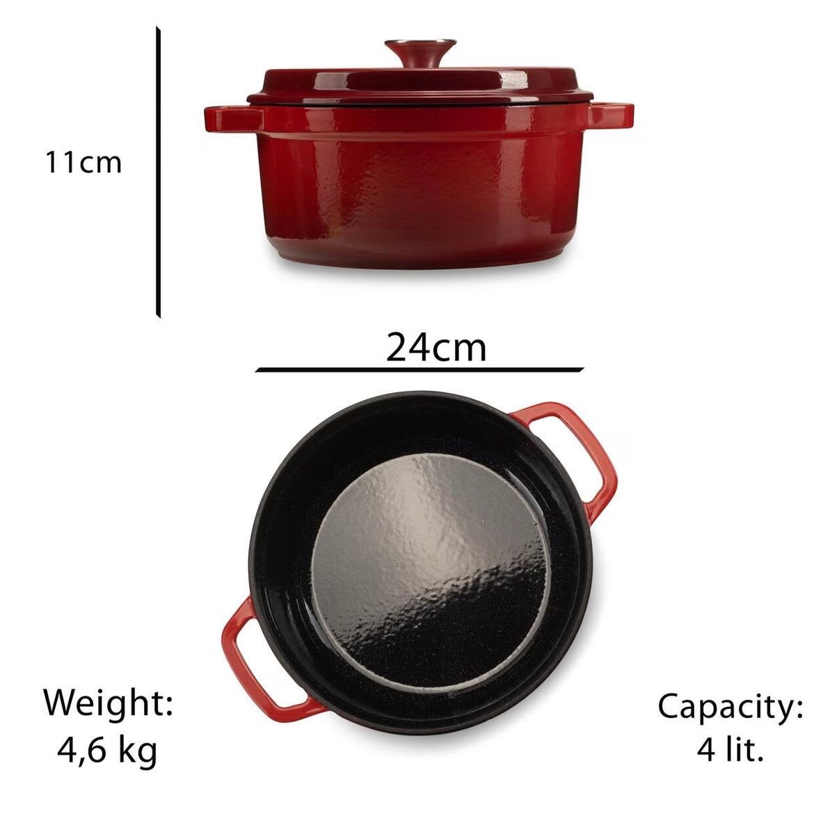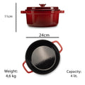 Oala 4 litri din fonta emailata cu capac Hausberg HB-H744, capacitate diametru 24 cm, adancime 11 cm, interior antiaderent, Rosu