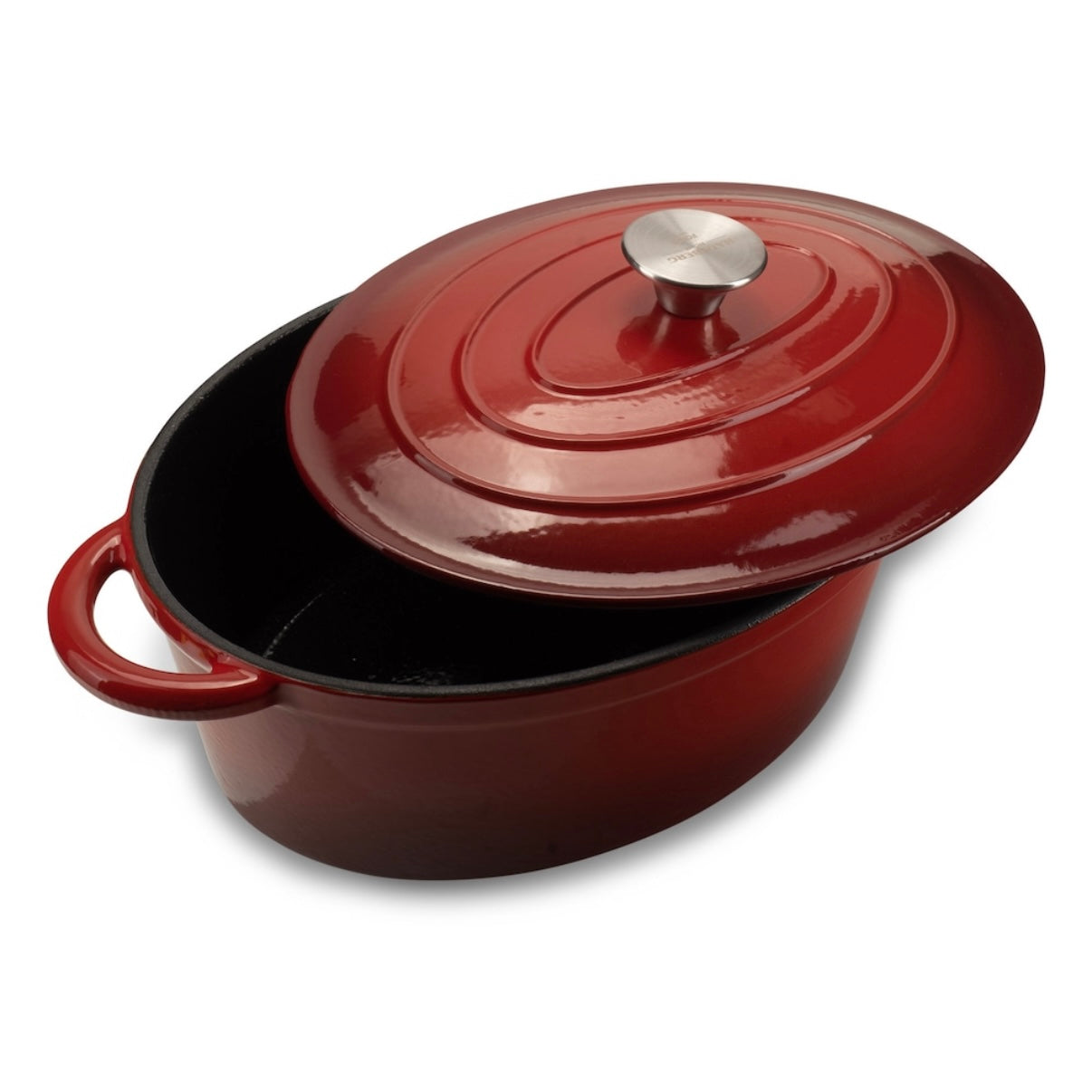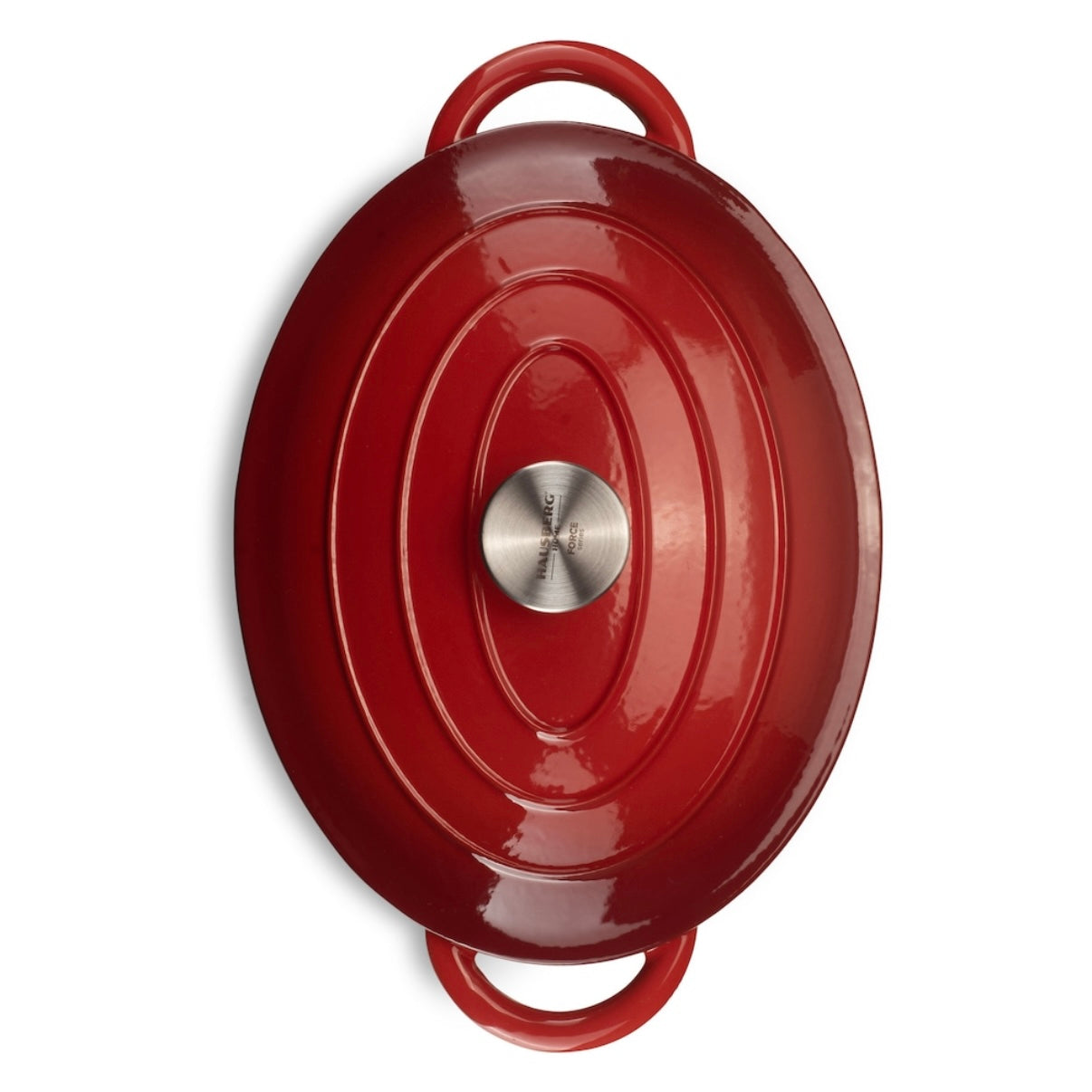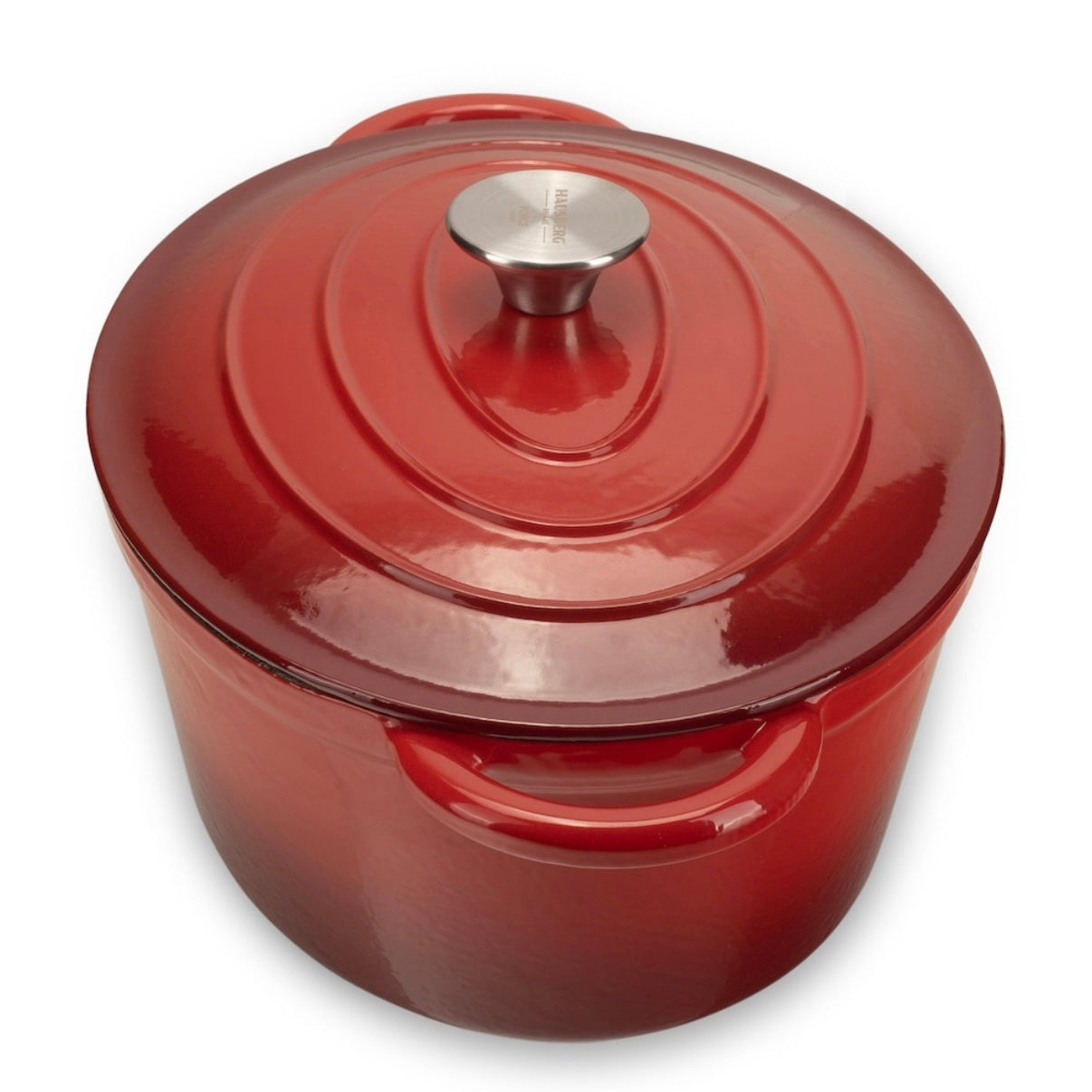 Oală din fonta emailata,Hausberg,HB-H750 ,capacitate 4,5 L,diametru 30 x 23 cm,adâncime 12 cm,interior ,capac din fontă,roșu