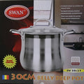 Oala inox, fund triplu, capac din sticla, Swan-Belly, cantitate oala 18 litri, 30 x 25 cm