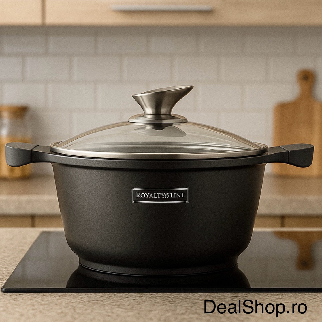 Îmbunătățește-ți experiența de gătit cu cratița Royalty Line RL-BS20M, de 2,5 litri și 20 cm, cu înveliș de marmură și capac de sticla