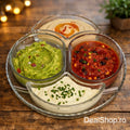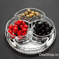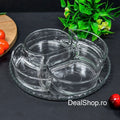 Designul modern cu compartimente separate permite servirea simultană a diferitelor gustări precum măsline, chipsuri, alune, sosuri, legume sau dulciuri, fără a se amesteca între ele.