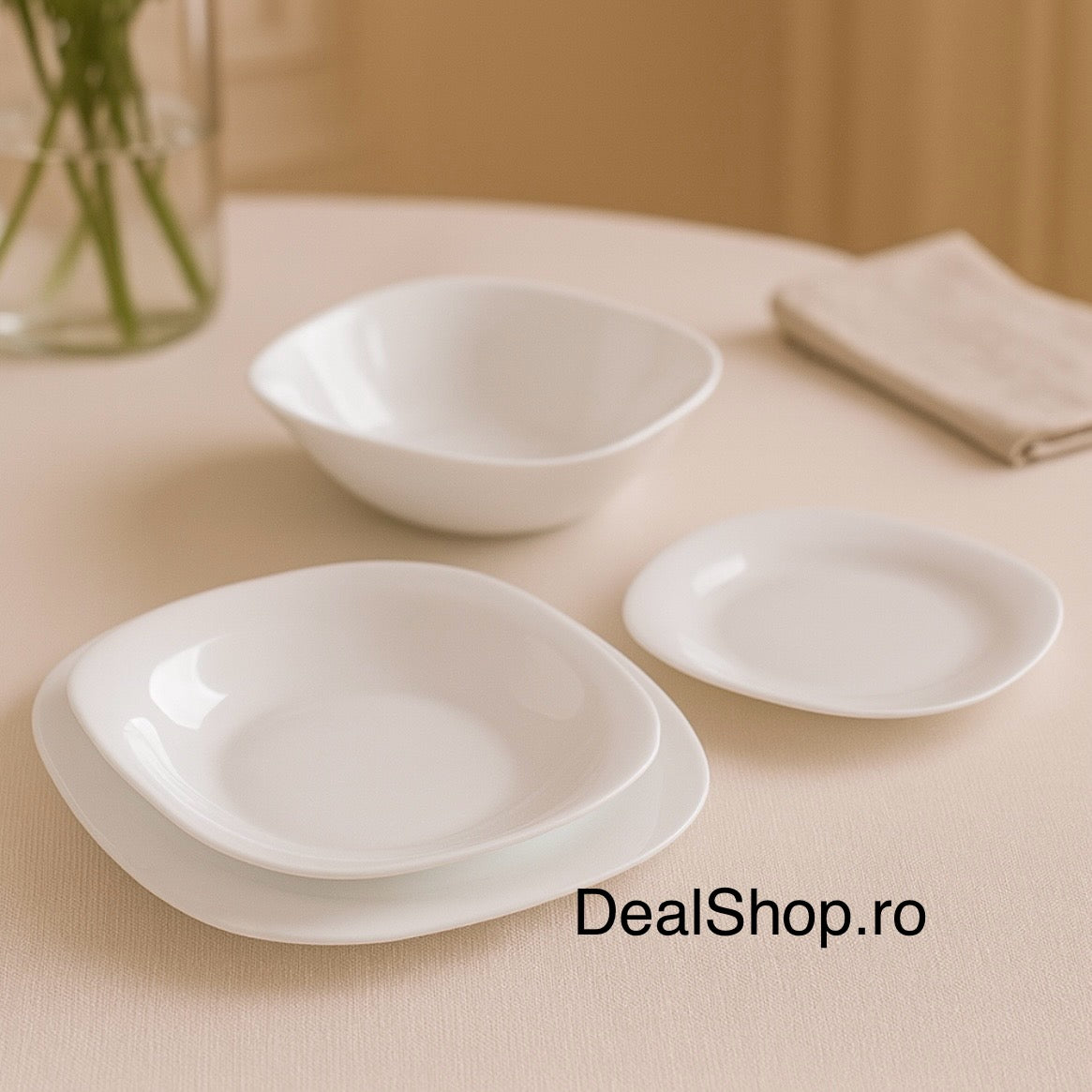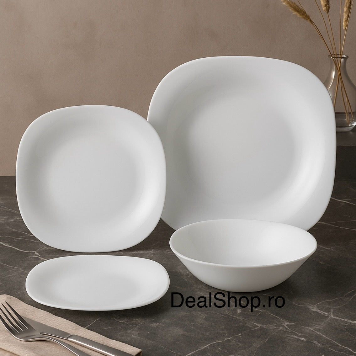 - Acest serviciu de masă alb simplu aduce un plus de rafinament și durabilitate în bucătăria ta, fiind alegerea perfectă pentru întreaga familie.