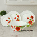Serviciu de masa din opal 19 piese, termorezistent, model flori roșii pentru 6 persoane Nara