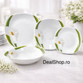 Aduce un plus de eleganță și rafinament mesei tale cu serviciul de masă din porțelan 19 piese, model floral Cală TL 173-7. Decorul delicat cu flori de cală, în nuanțe naturale de verde și galben, oferă un aspect proaspăt și luminos, potrivit atât pentru mesele zilnice, cât și pentru ocazii speciale.