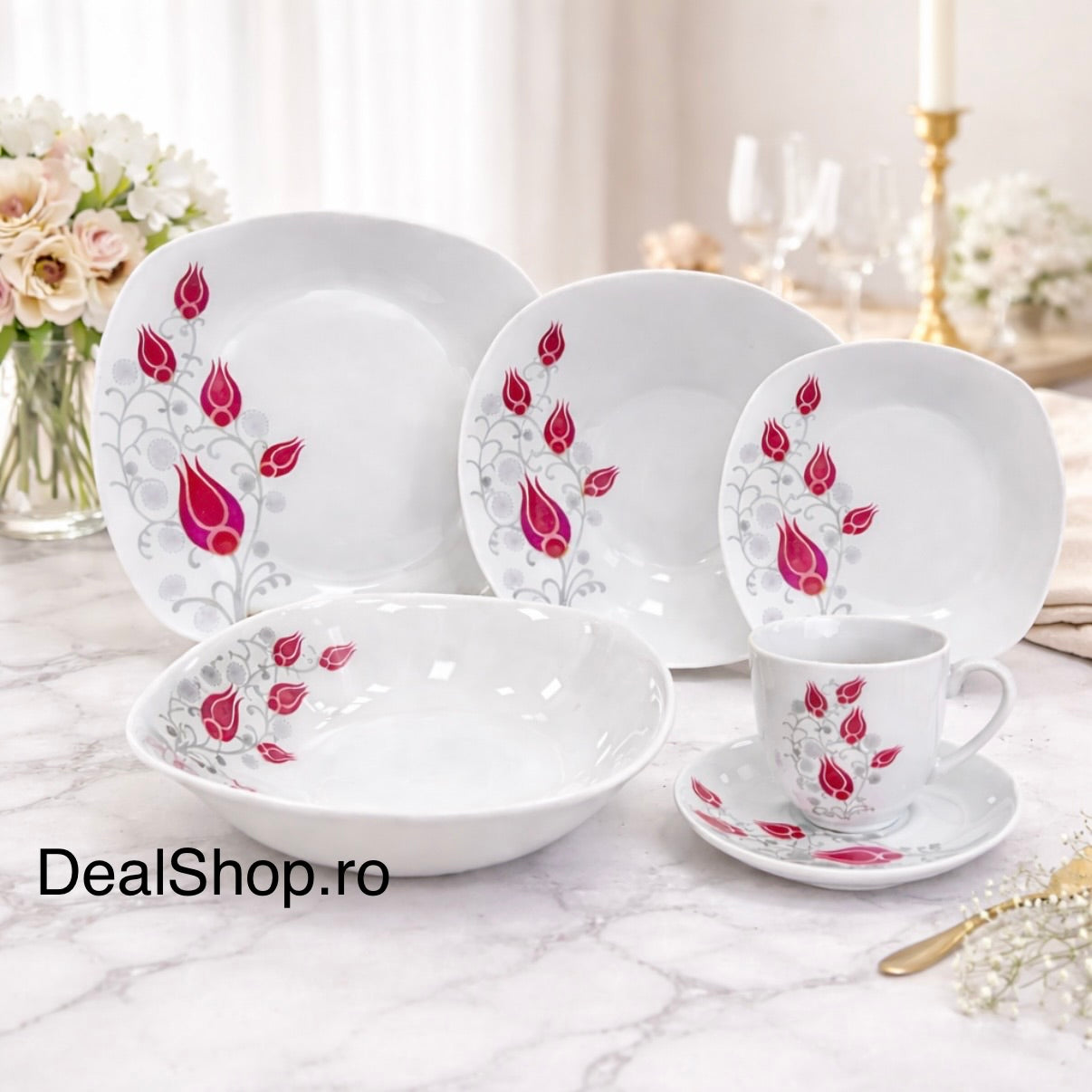 Prin designul său floral elegant, serviciul „Lalea Imperială” aduce un plus de stil oricărei mese și reprezintă și o idee inspirată de cadou pentru casă nouă, aniversări sau evenimente speciale.