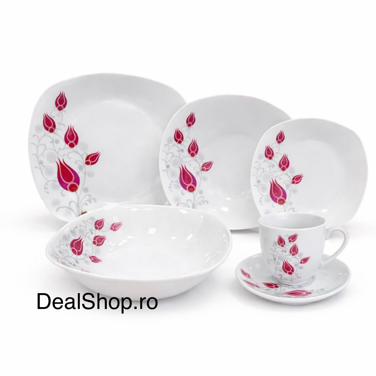 Serviciu de masă din porțelan „Lalea Imperială” 31 piese pentru 6 persoane – Set Farfurii, Bol și Cești Cafea 180 ml TL 173-9