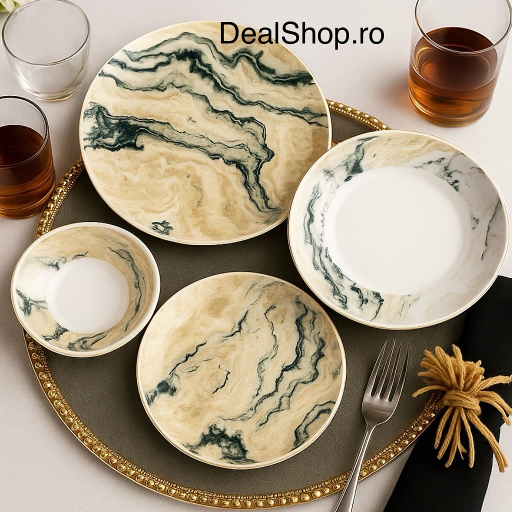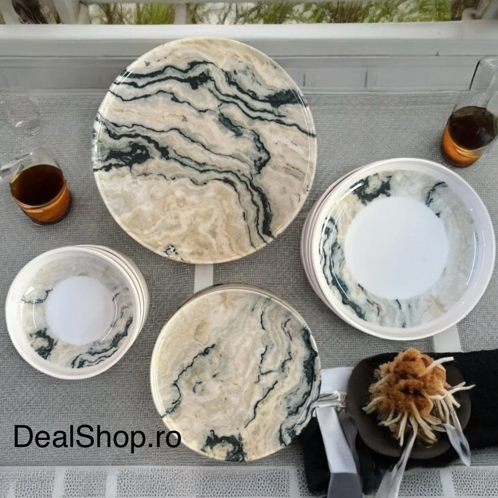 Alege serviciul de masă Marble – combinația perfectă între lux, durabilitate și stil contemporan, creat pentru cei care apreciază eleganța la fiecare detaliu.