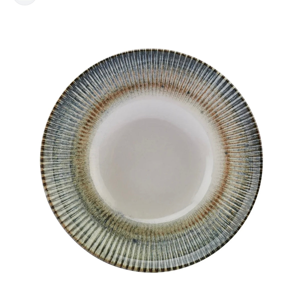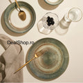 Adu eleganță și rafinament pe masa ta cu serviciul de masă din porțelan texturat Verde-Maro, format din 48 de piese pentru 12 persoane.