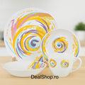 Serviciu de masa opal Spiral, 24 piese farfurii și cesti cu design modern colorat