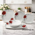 Serviciu de Masă Porțelan Elegant Line Floral, 20 Piese pentru 6 Persoane, Farfurii Pătrate cu Trandafiri TL173-1